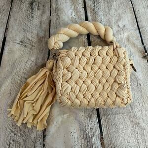 Braided Beige Fabric Rag Bag, READ, Pre-owned