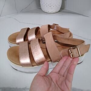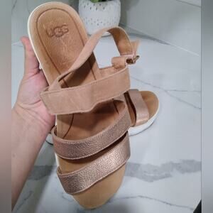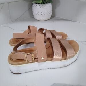 [D107] UGG Braelynn Metallic Leather Platform Sandal, Womens Size 9
