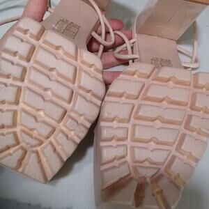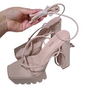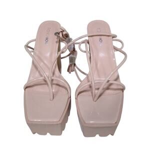 [D113] NEW Fashion Nova Cream Strappy Block Heel Heels, Size 7