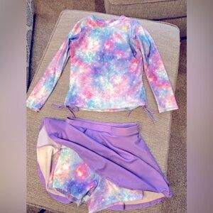 Girls Two Pieces Bathing Suit Long Sleeve Swimsuit Swimming Skirt with Shorts Swimwear Sz 8 T.