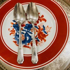 D1-SET OF TWO Vintage Silver Plate Art Deco Teaspoons in Beverly Pattern