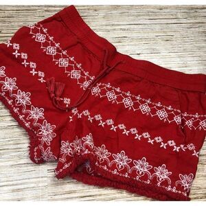 D-280 Loft linen / viscose blend embroidered drawstring fringe shorts RED sz M
