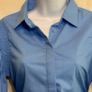 Worthington NWT, Blue, Long Sleeve, Button Down Blouse. Ruched detail at shoulders. Full puffy sleeves. Business casual. Lightweight. Soft & slightly stretchy. Cotton, polyester & spandex blend material. New with tags. Never worn. Original Price $37
