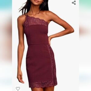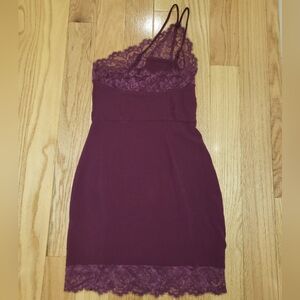 D4. FREE PEOPLE Premonitions Lace One-Shoulder Bodycon Slip Dress Size XS