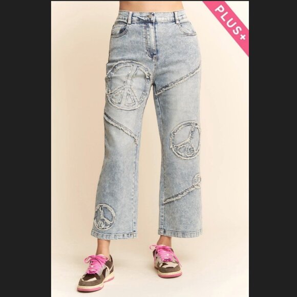 D4 NWT Light Wash Peace Sign Patch Work Jeans - Davi & Dani Oversized Plus Size