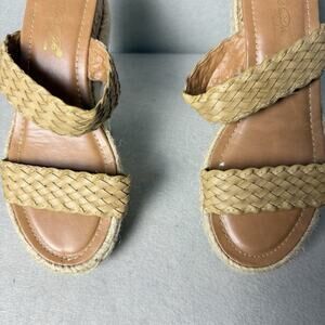 Keywords: raffia wedge sandals, flip-flops, summer shoes, beachwear, boho sandals, woven platform slides, resort style, vacation footwear