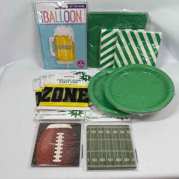 D9 Party Decorations- 11 piece tailgate party zone football supplies and decorations You are buying one set - there may be additional sets available for sale if you need more pieces. Sets will not be split up. Excellent new condition See pictures for measurements and additional details Bundle 2 or more items for additional savings and pay only one shipping fee. Smoke free, pet free home. Actual colors may vary due to differences in lighting and computer monitors.