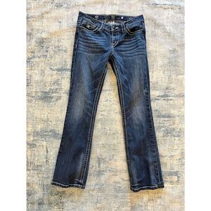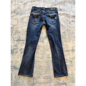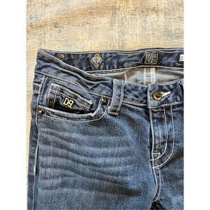 D9 Slick Distressed Rhinestone Studded Embellished Pocket Boot Cut Jeans 29"
