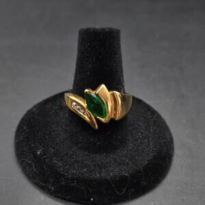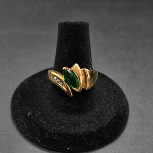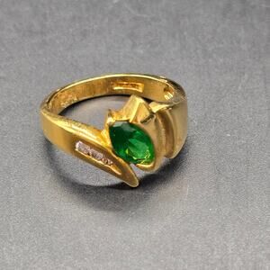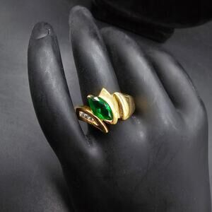 DAC Green CZ Ring Gold Plated Ring Rhinestone Cubic Zirconia