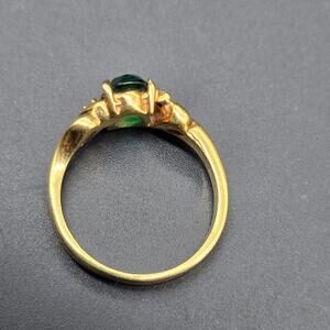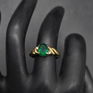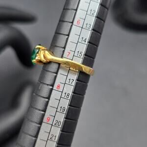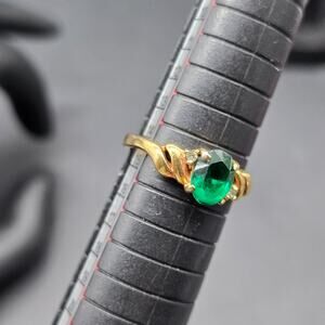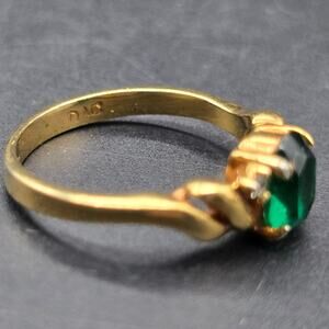 DAC Green Glass Rhinestone Ring Gold Tone Size 7 Costume Jewelry