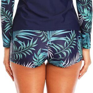 DACI BLUE TROPICAL LONG SLEEVE RASH GUARD SWIM SHORTS SET SIZE XL NWT