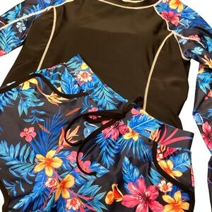 DACI Long Sleeve Rash Guard Built in Bra Shorts with Pockets Small Blue Floral