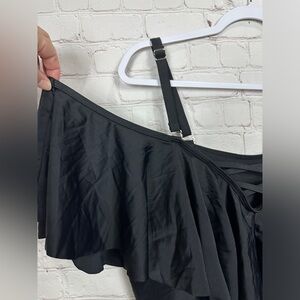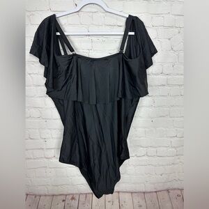 DACI One Piece Swimsuit black Tummy Control ruffle sleeves adj straps sz 22W NWT