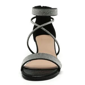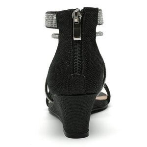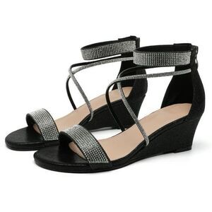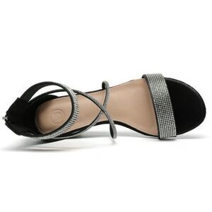 Dadawen women's wedges sandals.The wedges provide added height and elongate your legs, giving you a more elegant and sophisticated look.The incline of the wedge also offers better arch support compared to stilettos, making them more comfortable to wear for extended periods.The open toes provide breathability,keeping your feet cool and preventing them from getting sweaty or uncomfortable.It also allows you to show off your pedicure and adds a touch of femininity to your overall look.The round rhinestone patch embellishments add a touch of glamour and sparkle,making these sandals perfect for formal events,weddings,or any dressy summer occasion.The rhinestones catch the light and add a dazzling effect to your outfit, making sure you stand out from the crowd.The back zip closure makes these sandals easy to put on and take off, saving you time and effort. It eliminates the need for complicated buckles or straps,ensuring a hassle-free experience when getting ready for your event.Overall,women's high heeled sandals with ankle straps,wedges,and open toes adorned with rhinestones and a convenient back zip are the perfect choice for dressy summer events.