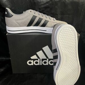 Stylish Adidas sneakers in gray with black stripes. Perfect for casual wear.