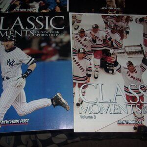 Nmes include Babe Ruth , Lou Gehrig , Reggie Jackson etc..Will also include 4 magazines that the newspaper NY Post inserted in their newspaper."Classic Moments In NY Sports History, Volumes 1 2 3 and 4. Great collection for a New York sports fan or collector.