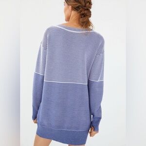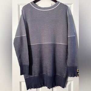 Cute & cozy blue striped long sleeve tunic sweater dress by Anthropologie's Daily Practice.