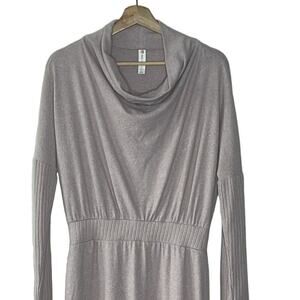 DAILY PRACTICE BY ANTHROPOLOGIE THE ARABELLA DRAPEY DRESS SIZE XS. Long ribbed sleeve, side slit Cowl neck Midi Dress.Pullover styling. Super soft and comfortable. Polyester, viscose, elastane. Pre-owned great condition. Measurements: pit to pit 22 ", length 49" .
