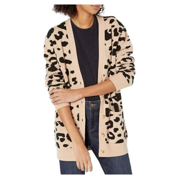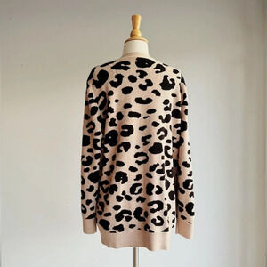 Daily Ritual Tan and Black Leopard Print Cardigan, size extra large.