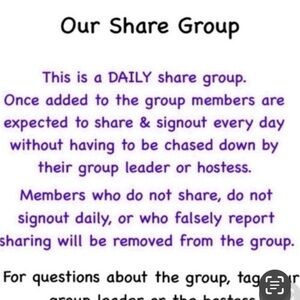 Share 10 different, available items from all closets listed in your assignment btwn 12am - 11:59pm (your time). Members choose whether or not they share “VACATION” closets. Members who do not share, sign out, or have non compliant items will be removed from the group. GLs are VOLUNTEERS who help keep our group strong. Time spent following up, checking shares, reporting out, is time they could be spending on their own closets. Please respect their time & don’t make them chase you for sign outs.