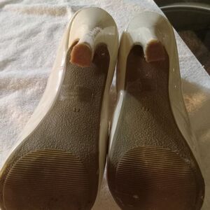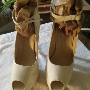 6" Off-White Peep Toe HEELS. Scoff marks on INSIDE of right shoe. Outside of both are flawless. Make a STATEMENT!