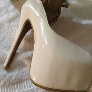 DAILY SHOES Sz 8.5. Off white 6" Peep Toe HEELS.