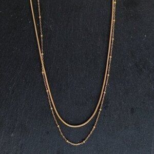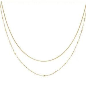 DAINTY DOUBLE layered Necklace Gold Snake chain Gold Beaded Satellite Chain