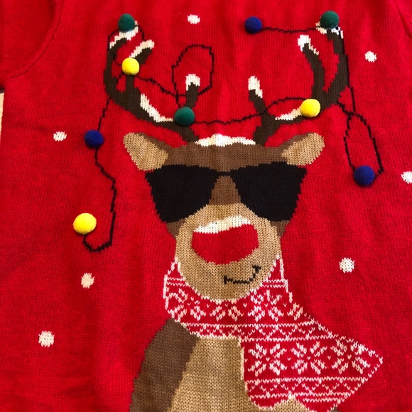 DAISY BOUTIQUE UGLY CHRISTMAS SWEATER XXL REINDEER WITH SUNGLASSES NWT