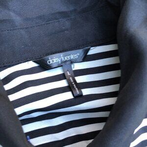DAISY FUENTES Sleeveless Striped Blouse Top Shirt Women's L Black No Show Button