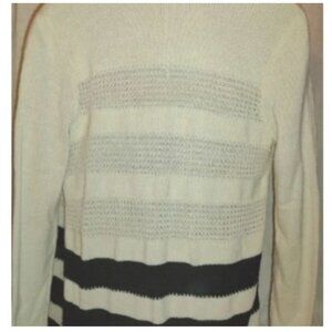 DAISY FUENTES long cardigan knit Sweater, white w/ blue stripes in size Medium