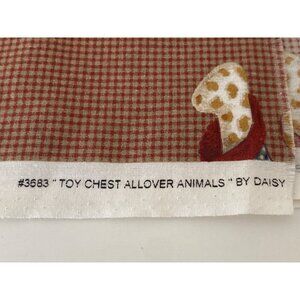 This DAISY KINGDOM 1998 vintage fabric features a charming toy chest allover animals checks design, perfect for quilting and sewing projects. Measuring approximately 44 x 32 inches, it's made from quality cotton.