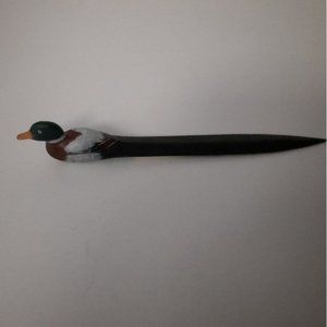 DANKIN & CO 1986 San Francisco letter opener wood carve duck handpainted. 8" long.