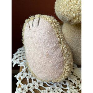 This Dakin Applause Teddy Bear is new with its original tags and features a light brown curly haired bear with a maroon plaid bow.