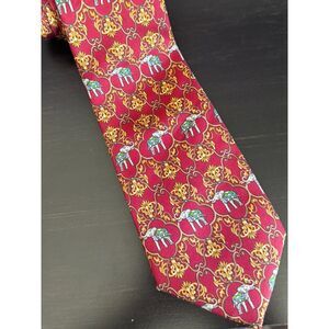 DAKS London Elephant Print Tie Burgundy Gold Scrollwork 100% Silk Vintage Tie