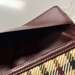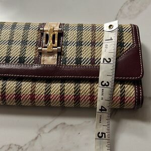 DAKS London Plaid Check Tri Fold Wallet Clutch Burgundy Leather Trim