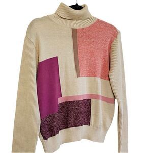 DAKS London Golf Vintage Abstract Print Turtleneck Sweater Sz L in EUC with no visible flaws
