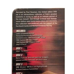Experience the thrill of motorsports with "Dale: Narrated by Paul Newman". This deluxe edition DVD set features a 99-minute documentary that showcases the life and achievements of the legendary Dale Earnhardt Sr. The set includes a full-screen format, steelbook case, and is rated NR.