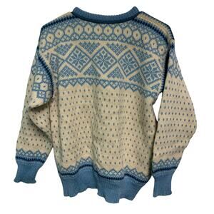 DALE of Norway Vintage Fair Isle Pure Wool Nordic Blue Cream Cardigan Sweater S