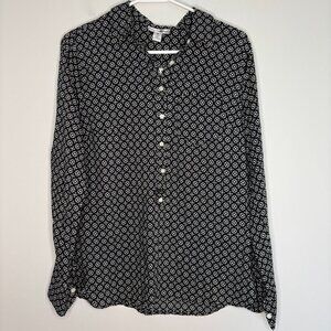 DALIA COLLECTION NEW Blouse Women M Geomet Design Button Up Collar Long Sleeve
