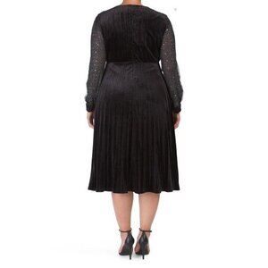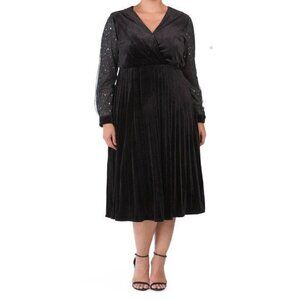 DALIA MACPHEE Plus Sheer Sequin Sleeve Midi Black Dress Womens Size 2X
