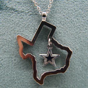 DALLAS COWBOY FANS - State of Texas Shape Necklace with a Blue Cowboy Star Dangling in the Middle, Earrings Match also