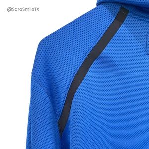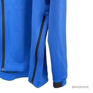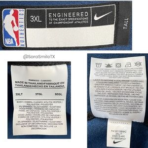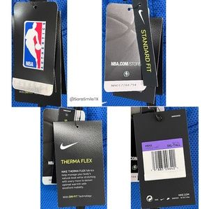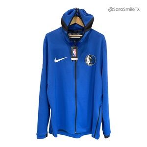 NWT Nike ~ NBA Authentics ~ Dallas Mavericks official team warmup jacket from 2018 season. WAS GIVEN TO ME BY NBA STAR SHAWN KEMP WHO RECEIVED IT IN HIS GIFT BAG FROM DIRK NOWITZKI’S LAST EVER HOME GAME. SAME STYLE AS THE OFFICIAL MAVS WARMUPS THE PLAYERS WORE THAT YEAR! THIS STYLE NOT SOLD TO THE PUBLIC! Royal blue, navy & white ThermaFlex & Dri-Fit long sleeve hooded warm-up jacket. Nike & Mavs logos on chest. NBA rubberized logo on sleeve. Lined hood with mesh panel. High neck in front. Zip closure. Standard fit. Zip vents on bottom sides. Big & tall size. Official National Basketball League item. New with tags. Has NBA AUTHENTICS hologram on tag. Fabric: body: 91% polyester, 9% spandex; hood panel: 100% polyester. Measurements (approx/laying flat): 28“ chest, 28“ waist, 28“ hip, 31“ sleeve, 32“ length. Made in Thailand. Size 3XL-Tall.
