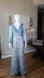 Damage Mac Duggal Blue Illusion Puff Sleeve Pleated Bodice Floor- Length Embellished Gown.