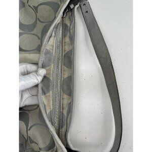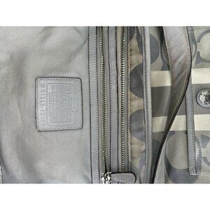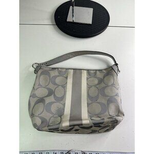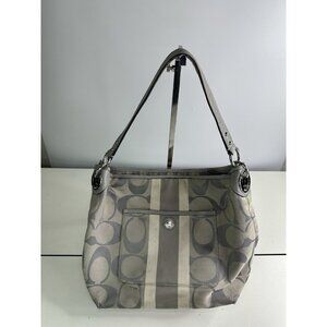 DAMAGED Coach Signature C Monogram Medium Tote Gray White Stripe Down Middle