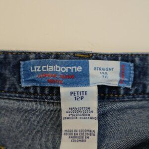 DAMAGED Liz Claiborne Straight Leg Petitie -12P- Jeans 32 / 28.5 Mid Rise Blue