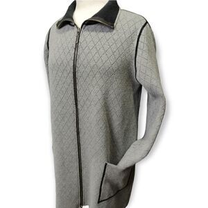 š„ DAMASK GRAY COTTON ZIP FRONT CARDIGAN BLAZER DUSTER COAT