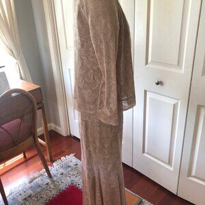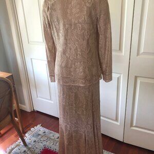 DAMIANOU 3 PIECE LACE SHIMMERY LONG DRESS WORN ONCE MOTHER OF BRIDE CHAMPAGNE