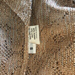 THE LACE IS INTERWOVEN WITH COPPERY METALLIC THREADS CREATING A SHIMMERY EFFECT.