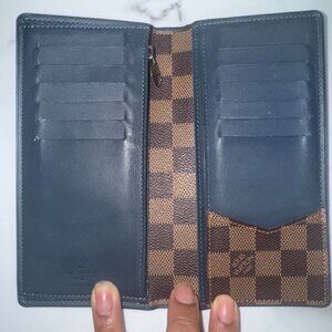 RARE DAMIER EBENE BRAZZA WALLET - Blue leather interior