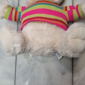DAN DEE Collector's Choice 20" plush TEDDY BEAR rainbow colorful sweater and hat. Nice soft bear, definitely cuddle up to it